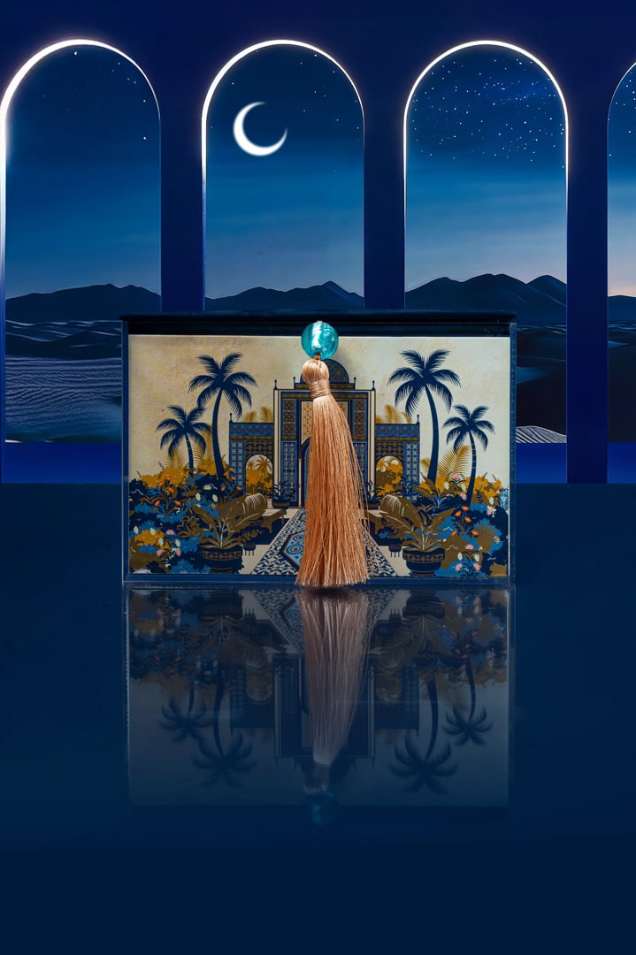 The assortment includes pralines and molded chocolates with Arabica coffee, pistachio kunafa, coconut, and cranberry notes, followed by indulgent truffles of cinnamon, rice crispy, halawa milk, and rose petal.