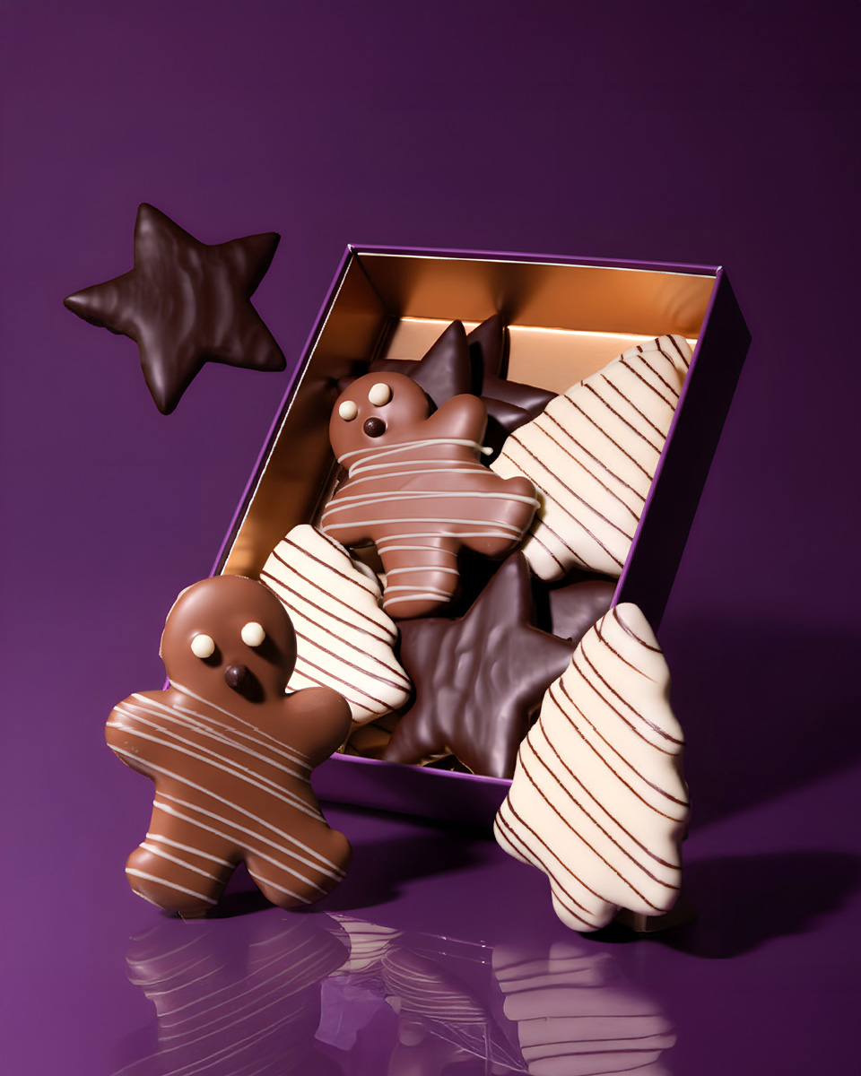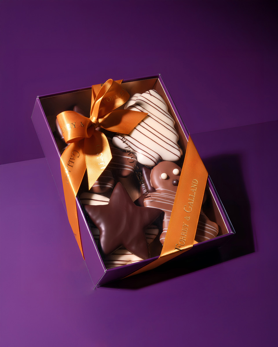 A festive medley of our finest cookies, in festive shapes, hand-dipped in chocolate for a rich finish.
