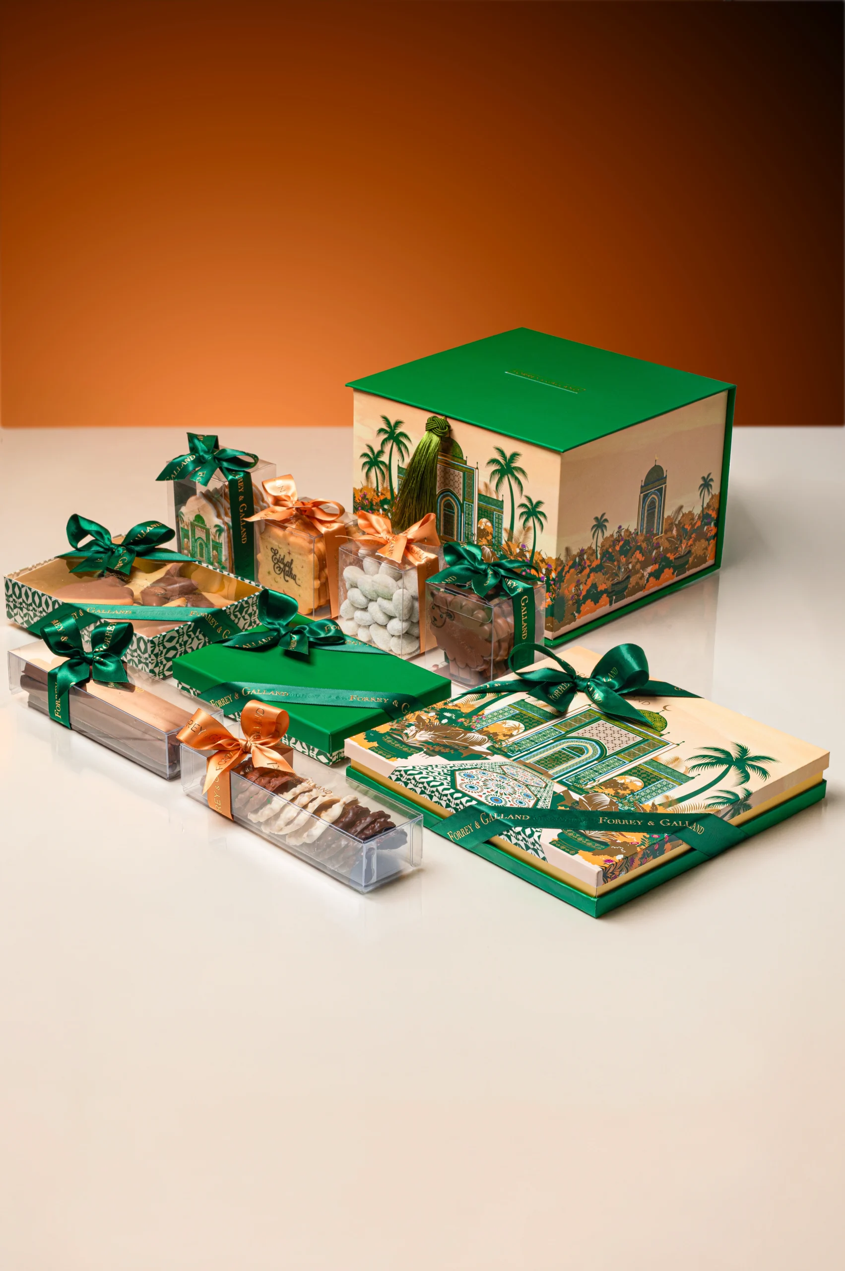 A thoughtfully curated hamper designed to bring together Forrey & Galland’s signature chocolates, artisanal sweets, and baked delicacies in one refined seasonal presentation. Elegant and generous in spirit, it is ideal for intimate gifting, graceful hosting, and meaningful Eid sharing.