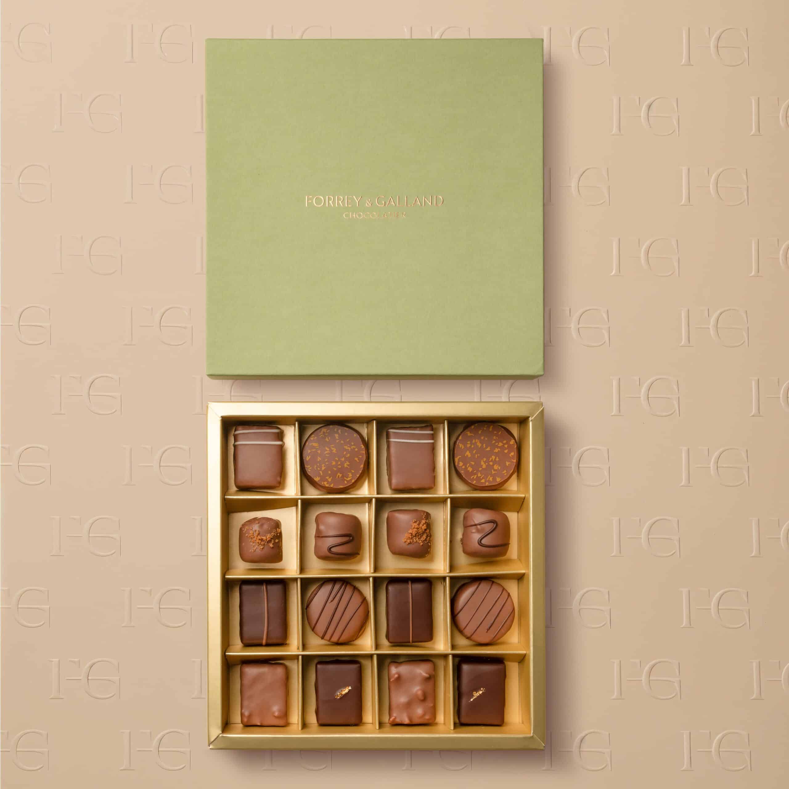 Enjoy the best Forrey and Galland has to offer with this classic box filled with 16 pcs of handmade chocolates! Select from our bestsellers or fill your box with our range of breathtaking flavours including milk and dark chocolates, rose, dates, coffee, rahash and more.
