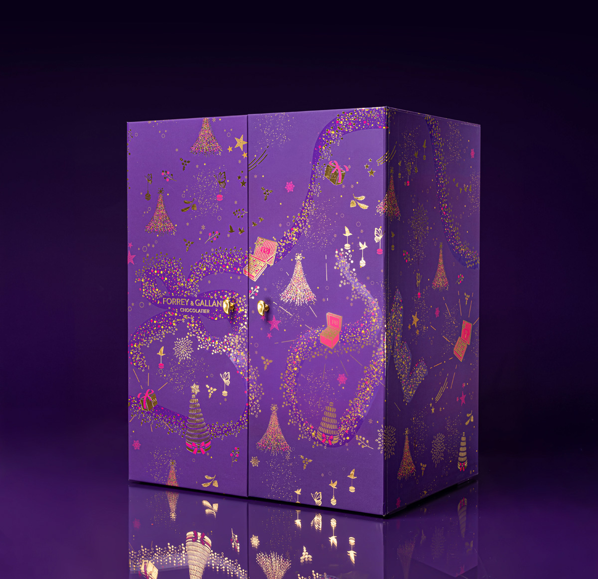 Content: Assorted chocolates, truffles, cookies, cakes, and gourmet spreads.