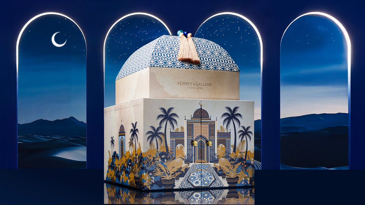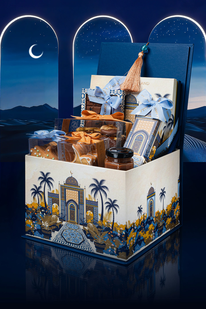 Opt for an elegant gift box inspired by the Toile De Jouy print design, filled with 25 pcs of handmade French chocolates! Select from our bestsellers or fill your box with our range of breathtaking flavours including milk and dark chocolates, rose, dates, coffee, rahash and more.
